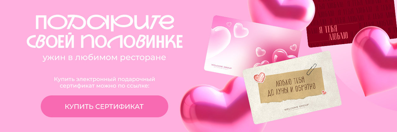 Поэтому ко Дню всех влюбленных мы решили взять на себя роль Купидона и подарить Вам возможность признаться в своих чувствах особенному человеку – отправить электронную валентинку от Welcome Group! Но валентинка непростая, к ней прилагается фирменный десерт или коктейль в одном из наших ресторанов в подарок!Сделать это очень просто: